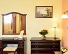 Площадь номера 32 кв.м. НОМЕРЕ: двуспальная кровать, прикроватные тумбы, шкаф, кушетка, полочка для багажа, тумба, 2 полукресла, стол журнальный, стол туалетный, пуфик, сейф, холодильник, телефон, спутниковое ТВ, кондиционер, WiFi, чайная станция. В ВАННОЙ: ванна с душем, фен, кнопка экстренного вызова, комплект полотенец, туалетные принадлежности, тапочки, халаты.