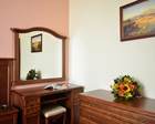 Площадь номера 14 кв.м. В НОМЕРЕ: полутораспальная кровать, прикроватная тумба, шкаф, багажная тумба, стол, стул, сейф, холодильник, телефон, спутниковое ТВ, кондиционер, WiFi, чайная станция. В ВАННОЙ: ванна с душем, фен, кнопка экстренного вызова, комплект полотенец, туалетные принадлежности, тапочки, халат.
