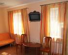 8 двухместных номеров, отдельная кухня, сауна с бассейном. В номерах: одна двуспальная или 2 односпальные кровати, шкаф, тумбочка, санузел, душевая кабина, телевизор, телефон, холодильник.