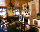 Стилизованные под охотничий домик помещения оформлены по эскизам дизайнера Натальи Тикк и оснащены современной техникой и удобной мебелью. База отдыха одновременно может принять около 50 гостей.