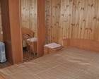 Также на первом этаже расположены две спальные комнаты, в каждой из которых стоит двуспальная кровать, и санузел с душевой кабиной.