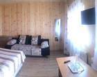 Первое, куда вы попадете при входе в дом, — это большая вместительная веранда. Далее вас ожидает светлая уютная гостиная, совмещенная с кухней, где с комфортом может расположиться до 14 человек. Среди обстановки особо стоит отметить два вместительных раскладных дивана. На кухне есть все необходимое, включая холодильник, микроволновую печь, чайник и комплект посуды на 12 персон.