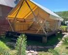 На базе для проживания установлен палаточный лагерь, где можно отдохнуть в двухместной палатке со многими удобствами. Палатка необычная и представляет собой сафари-тент, где есть вход и деревянная основа. Она делится на жилую и кухонные зоны. Также в ней есть окно с москитной сеткой и открытая веранда.