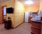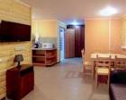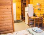 Поселиться на базе можно в двухэтажных коттеджах-срубах или домиках-бунгало с тремя входами. Жилье комфортно обустроено, подключено спутниковое телевидение, работает бесплатная автостоянка.