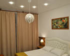 Трёхкомнатные апартаменты. Две спальни. В одной три одноместные кровати, в другой большая двуспальная кровать кровать , в кухне-гостинной имеется раскладной диван. Общее кол-во спальных мест-7.Есть холодильник, стиральная машина. К вашим услугам парковочное место, входит в стоимость размещения. Цена договорная.