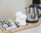 Номера оснащены открывающимся окном, сейфом, кондиционером, мини-холодильником, спутниковым телевидением, телефоном, WiFi, письменным столом со стулом и чайным набором.