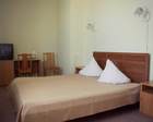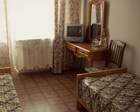 Отдельное спальное место в помещении на двоих, шкаф, стол, туалетный столик, телевизор и холодильник. Санузел с душем есть в каждой комнате данной категории.