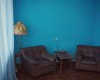 Основное место – двуспальная кровать. Помимо этого есть мягкая мебель, зеркало и шкаф, а также холодильник и телевизор. Имеется санузел с установленной ванной. В номере сразу три балкона. Одним словом, в номере есть все для комфортного проживания.