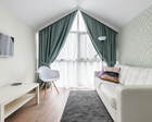 Апартаменты состоят из спальни, кухни-гостиной с панорамным остеклением и санузла.