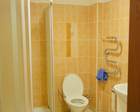 Лоджия. Спальня: 2-х-спальная кровать, телевизор, холодильник, графин и 2 стакана, стол – тумба, телевизор, 1 стул, 1 кресло-ракушка, 2 прикроватные тумбочки, 2 бра, зеркало, шкаф платяной, прикроватный коврик. Санузел: совмещенный. Душевая кабина, зеркало, раковина, унитаз.