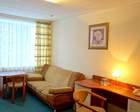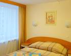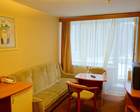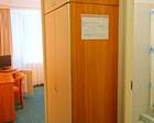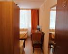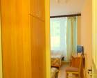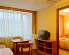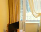 Лоджия. Две 1,5-спальные кровати, телевизор, 2 прикроватные тумбочки, журнальный стол, 2 стула, графин и 2 стакана, 2 бра, зеркало, прикроватный коврик, шкаф платяной. Санузел: совмещенный. Душевая кабина, зеркало, раковина, унитаз.