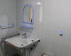 2 лоджии. Большая комната (24 кв. м.): телевизор, холодильник, стол, стол письменный, зеркало, 2 шкафа. 2-е медицинские кровати, 2 прикроватные тумбочки, 2 настенных бра. Санузел совмещенный, сантехника спецализированная: душ, раковина, унитаз.