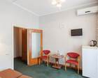 Проживающим в санатории предоставляется возможность проживать в помещениях гостиничного корпуса, стоимость которых зависит от собственных предпочтений посетителей. Но в каждой комнате имеется необходимая мебель и бытовая техника.