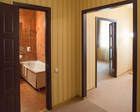 Двухкомнатный номер: спальня и комната для отдыха. ОСНАЩЕНИЕ НОМЕРА: двухспальная кровать, письменный стол и 2 стула, 2 тумбочки, бра, диван-трансформер, кресло, оборудованная прихожая. ВАННАЯ КОМНАТА: ванная, раковина, набор полотенец, тапочки, набор для душа, фен. ДЛЯ КОМФОРТНОГО РАЗМЕЩЕНИЯ: кондиционер, телевизор, кабельное TV, телефон, WiFi, мини-бар, чайник/чайные принадлежности, вода питьевая в бутылочках.