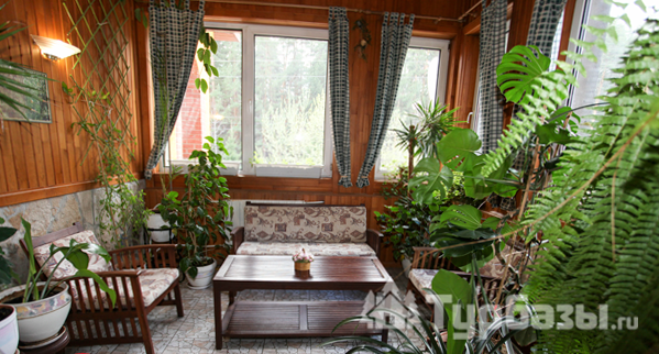 Гостевой дом окружен пушистыми соснами. Территория турбазы благоустроенная, ухожена заботливыми руками персонала.