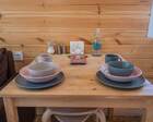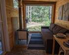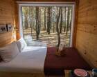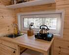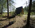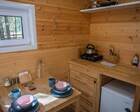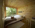 - Мини-дома "шалаш". Оснащен кроватью и спилами в виде тумбочек. Можно насладиться единением с природой. Электричество есть.