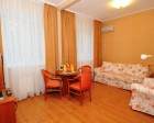 1-комнатный с кухней, 2-х местный. В комнате: большая кровать, диван (дополнительное место), телевизор. Полы с подогревом, кондиционер. В туалетной комнате: душевая кабина, халаты, тапочки, фен. Полностью оборудованная кухня: плита, холодильник, кулер, посуда. Балкон. Wi-fi Около коттеджа мангальная зона (уголь и дрова за дополнительную плату). Возможно проживание с животным (кроме собак бойцовских пород) за дополнительную плату.