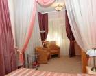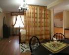 3-х комнатный с кухней, 6-ти местный: 3 комнаты: спальня, детская комната с двухъярусной кроватью, диваном (доп. место), гостиная с телевизором и большим диваном. Полы с подогревом, кондиционер. В туалетной комнате: душевая кабина, халаты, тапочки, фен. Полностью оборудованная кухня: плита, холодильник, кулер, посуда. Балкон. Wi-fi. Около коттеджа мангальная зона (уголь и дрова за дополнительную плату).