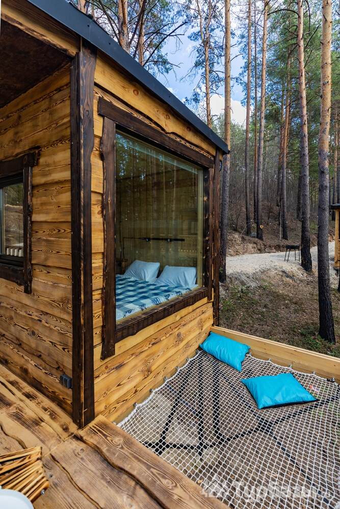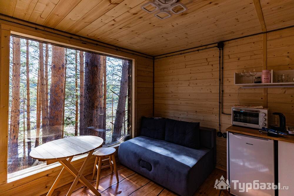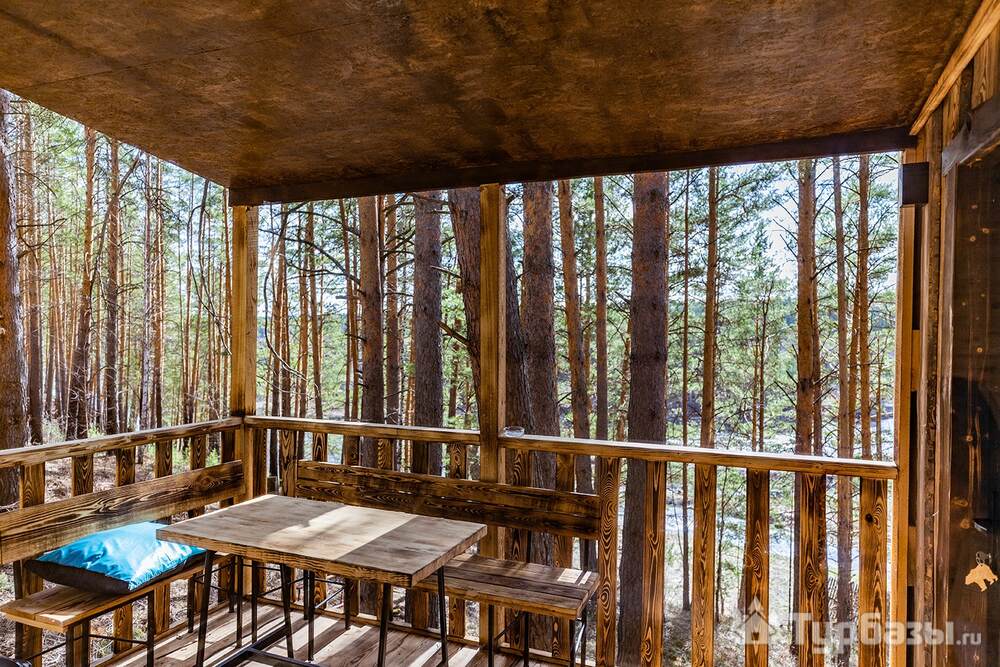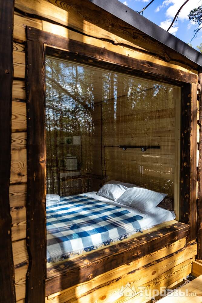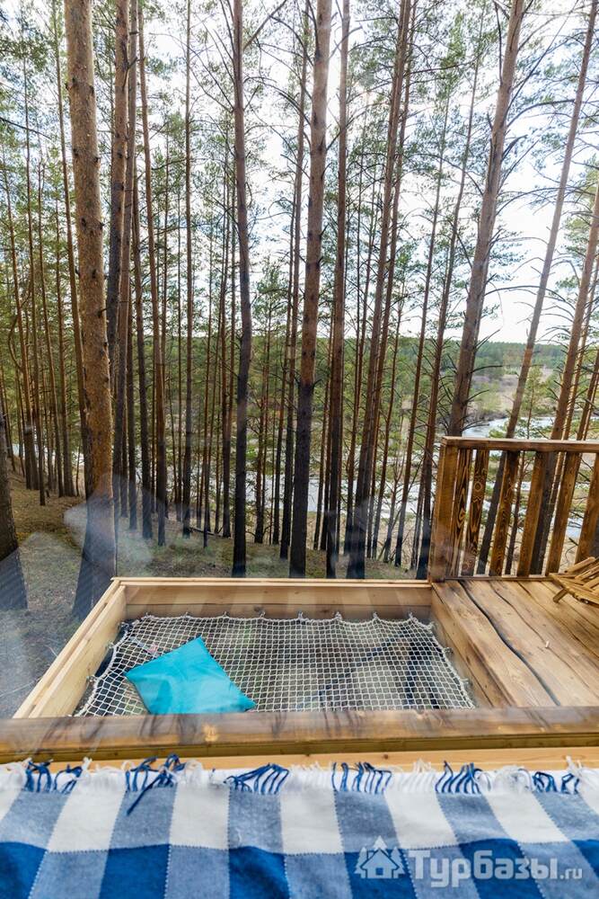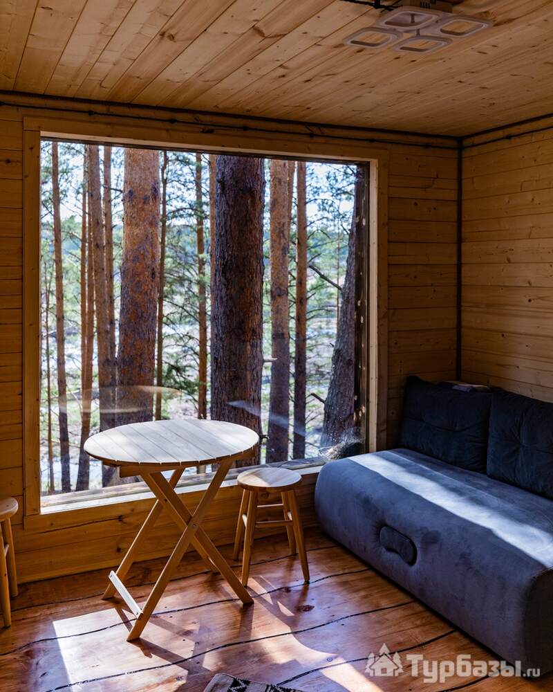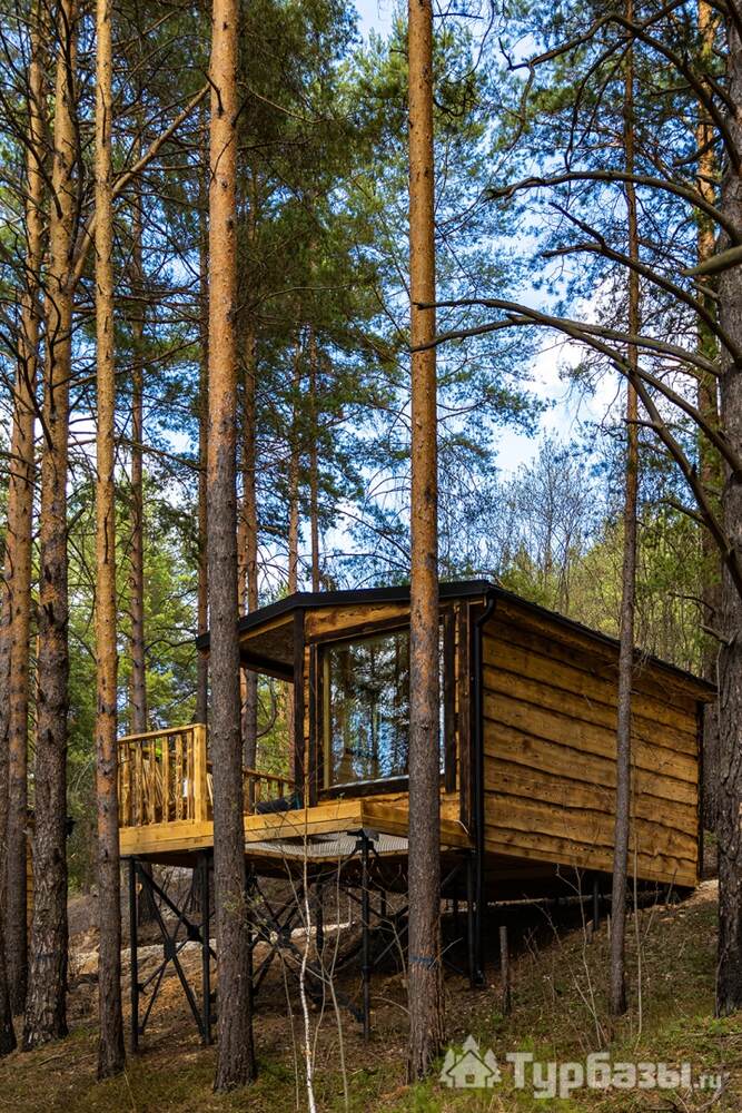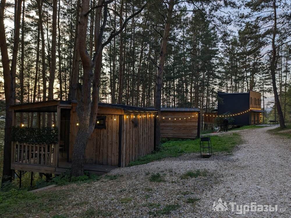 На объекте — двухместные и четырехместные домики, а также триплекс с двухэтажными модулями. Многие домики установлены на сваях на краю обрыва, что обеспечивает панорамные виды на реку и лес. На территории есть баня и сибирский чан; доступны дополнительные сервисы — гриль-зоны, прокат велосипедов, прокат снегоходов и площадки для фотосессий. Можно приезжать с собаками — глэмпинг дружелюбен к питомцам.