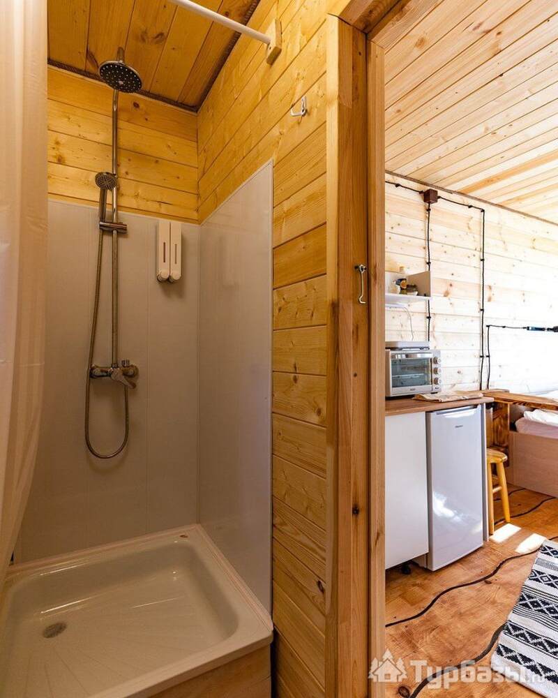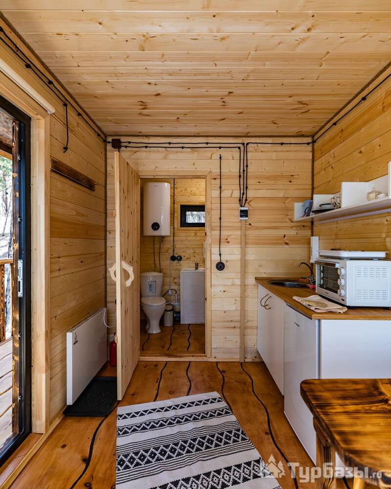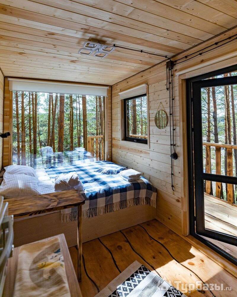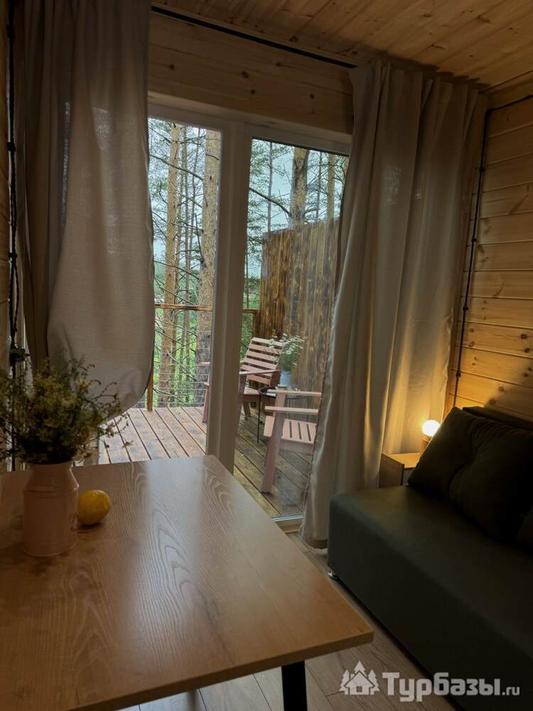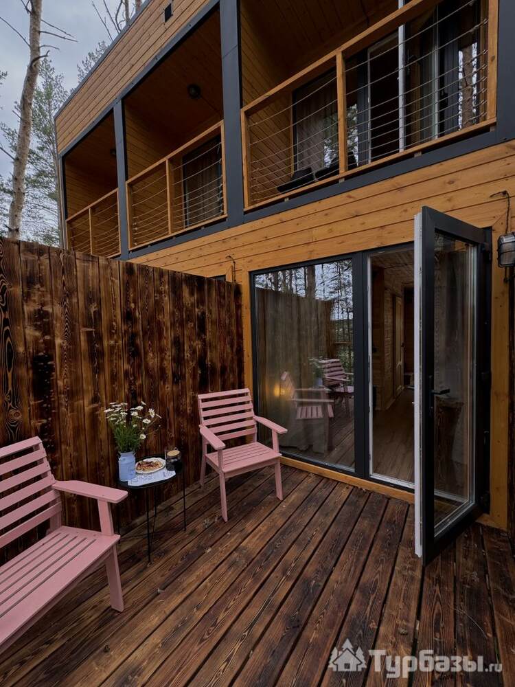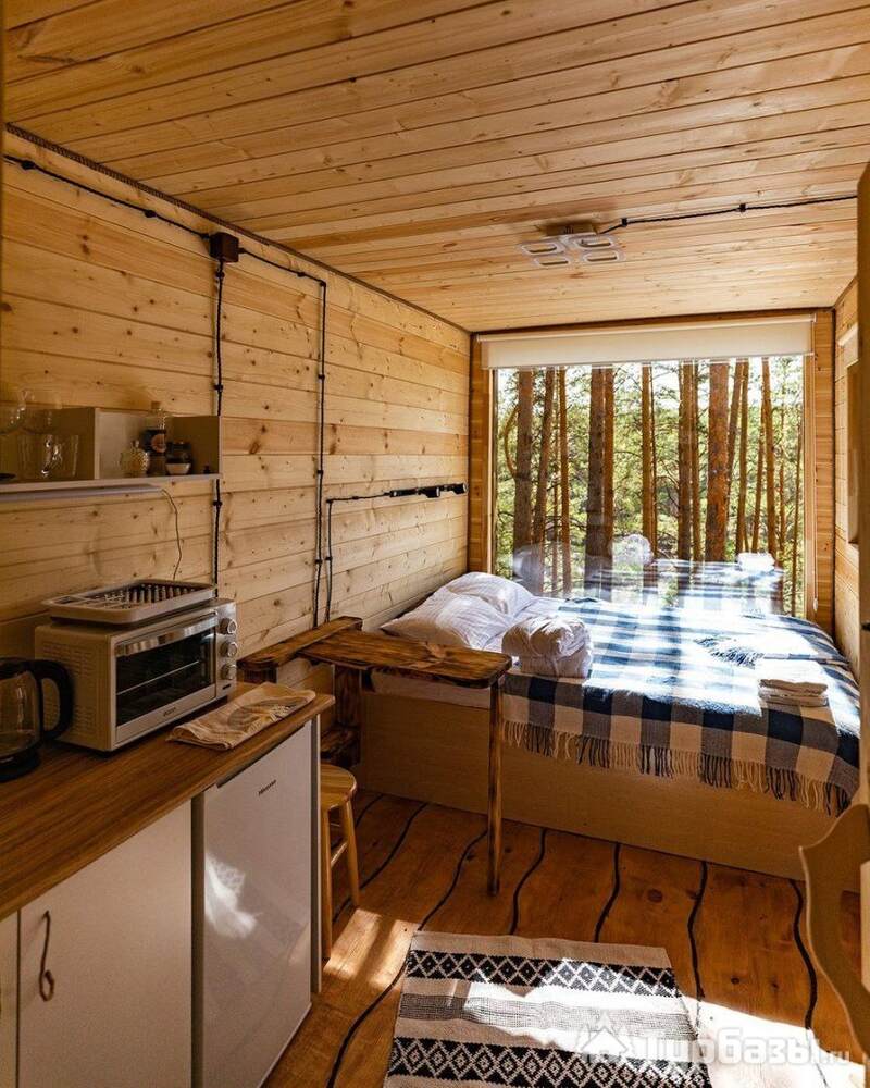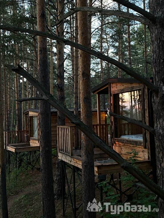 На объекте — двухместные и четырехместные домики, а также триплекс с двухэтажными модулями. Многие домики установлены на сваях на краю обрыва, что обеспечивает панорамные виды на реку и лес. На территории есть баня и сибирский чан; доступны дополнительные сервисы — гриль-зоны, прокат велосипедов, прокат снегоходов и площадки для фотосессий. Можно приезжать с собаками — глэмпинг дружелюбен к питомцам.