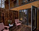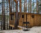 «СУЕТЫ.НЕТ» — камерная база отдыха в духе «ухода от городской суеты»: аккуратные домики и модульный триплекс, расположенные среди вековых сосен на краю села и на сваях над обрывом. Проект делает ставку на тихий, созерцательный отдых — панорамные окна, вид на реку и лес, минимальный уровень шума и атмосфера уединения.