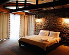 Проживают гости в экономерах, стены которых обшиты деревом. Номера располагаются на 1-ом и 2-ом этажах гостевого дома. Комнаты высокой категории комфортности. В жилых помещениях есть все удобства, чтобы сделать отдых приятным. Имеется выход на открытую веранду, откуда можно любоваться окрестными пейзажами удивительной красоты.