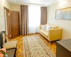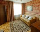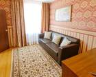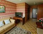 Площадь номера: 50 кв.м.: двуспальная кровать (king-size), 2 тумбочки с торшерами, мягкая мебель, журнальный столик, 2 телевизора, кондиционер, телефон, фен, ванные принадлежности, полотенца, халаты, шкаф, прихожий гарнитур, Сервант с набором посуды, замена постельного белья 1 раз в 3 дня.