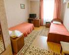 Площадь номера: 19 кв.м.: две полутороспальные кровати, телевизор, телефон, стол, холодильник, шкаф, кондиционер, ванные принадлежности, полотенца, фен, бесплатный доступ к сети интернет, небольшой мебельный гарнитур в прихожей, замена постельного белья 1 раз в 3 дня.
