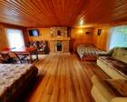 На территории туристического комплекса есть русская баня на дровах, уютные беседки и бассейн. Для проживания гостей предусмотрены современные коттеджи из натурального дерева. В каждом коттедже есть гостиная с камином и мягкой мебелью.