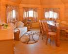 Размещение гостей осуществляется в комфортных домах, где собраны базовые удобства. Питание производится в кафетерии, за каждым постояльцем домика закреплен столик в течение всего времени проживания. Меню разнообразное, готовкой занимаются профессиональные повара. Среди яств представлены изделия из мяса, а также для вегетарианцев. Самостоятельно можно приготовить шашлык на летней кухне или в специально отведенных для этих целей мангалах.