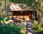 На территории турбазы есть 2 гостевых домика на 2 человека и 2-хэтажный VIP-дом. В 2-хуровневом доме 3 спальных комнаты, каминный зал, кухня, вместительная столовая, 2 душевые.