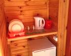Готовить еду нужно самостоятельно. Для этого имеется небольшая общая кухня. Удобства так же общие, они расположены в отдельном строении. Горячая и холодная вода подается круглосуточно. На территории комплекса есть беседки и мангалы.