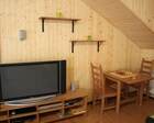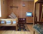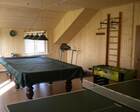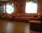На огороженной территории базы находятся 5 гостевых домиков. Они рассчитаны на размещение 2-4, 4-7, 8-10 человек. В каждом домике есть санузел, кухня, несколько спальных помещений. Большая компания размещается в 2 –этажном, отапливаемом здании. На первом этаже оборудована большая гостиная с камином, телевизором. Здесь же находится просторная столовая. Второй этаж занимают 3 спальни, комната отдыха с караоке, бильярдом, настольным футболом, два санузла с ванной, душем.