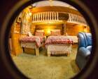 Во время экскурсий посетители посещают резную избушку самого хозяина резиденции. На 1-ом этаже ее находится тронный зал и рабочий кабинет чародея, на 2-ом этаже – покои с балконом.