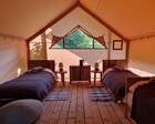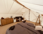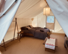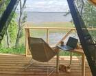 Комфортабельный глэмпинг на индивидуальном помосте у самого берега озера для проживания 3 человек. — Просторная веранда перед палаткой с комфортными шезлонгами и столиком — Большая двухспальная и односпальная кровати с подогревом — Прикроватные тумбочки — Обогреватель с функцией вентилирования — Набор посуды и чайник — Чай и кофе За каждым глэмпингом закреплен свой отдельный душевой блок с туалетом и жидким мылом.