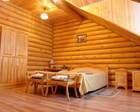 Полулюкс в "Теремах" - это не просто номер, но совершенно особая атмосфера русской теплоты и гостеприимства. Большое мансардное окно, открывает дивный вид на красоты усадьбы - на сосновый бор и пруды, на зеленые поляны и разбросанные на них деревянные дома, будто только что сошедшие со страницы русской сказки!