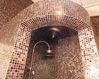 Ванная комната полностью выполнена из мозаики. В ванной комнате есть раковина - столешница, унитаз, большая душевая, полотенцесушитель, зеркало с подсветкой. Ванная комната оснащена теплым полом.