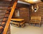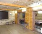 Помимо жилых помещений, есть банкетный дом, позволяющий комфортно разместить внутри до 40 человек. Это прекрасный вариант для проведения мероприятий и праздников. Дом оформлен в стиле стариной русской избы с каменной печью, резными наличниками и напольными часами. Интерьер украшен картинами местных художников.