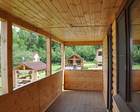 Гостевые домики, беседки, спортплощадка и баня отличаются удобным расположением. Отдыхающих размещают в 4 благоустроенных 2-хэтажных коттеджах. Каждый гостевой домик рассчитан на 6 персон.