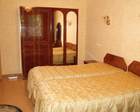 Площадь номера 12кв.м. Прихожая: шкаф для одежды, зеркало. Комната: одна двуспальная кровать, тумба прикроватная, журнальный стол, торшер, кресло, шкаф платяной, комод, TV-панель, холодильник, набор посуды, вентилятор. Сан.узел: раковина, унитаз, ванна, шкаф с зеркалом, фен, жидкое мыло, полотенцесушитель. Лождия: сушилка для белья, шезлонг.