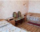 Площадь номера — 12 кв.м. Прихожая: Шкаф для одежды. Комната: две односпальные кровати, тумба прикроватная, холодильник, стул или кресло, телевизор, лампа настольная или бра, зеркало. Санузел: раковина, унитаз, ванная или душ, зеркало с полочкой, полотенца. Лоджия: Сушилка для белья.