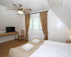 Для проживания гостей предусмотрены домики с пятью двухместными номерами в каждом. При желании есть вариант арендовать домик целиком. В наличии есть парковочные места для автомобилей.