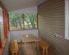 В базе отдыха имеются комфортные и уютные деревянные дома класса «люкс» на 3 или 4 места. В них есть кондиционеры, горячее и холодное водоснабжение. Каждый проем закрыт сетками против насекомых. В каждом доме, где можно жить в любой сезон года, имеются две спальни, кухня, объединенная с гостиной, веранда, санузел с душевой кабинкой.