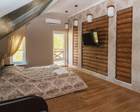 Гости выбирают один из четырёх вариантов размещения в шестиместных двухэтажных домиках. Четыре уютных деревянных коттеджей построены на берегу реки. Первые этажи занимает гостиная с камином, диваном, телевизором. Здесь же обустроена кухня со всем необходимым оборудованием. Туалет, душ. Две спальные комнаты находятся на втором этаже. Они имеют ванную комнату, туалет, кондиционер.