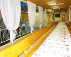 Заказать проведение банкета или просто вкусно поесть можно в большом кафе. Оно имеет несколько залов, вместимостью от 20 до 250 человек. Поесть можно и на свежем воздухе. Для этого на территории разместили ряд летних беседок с мангалом, есть место для проведения пикника и летняя веранда, вместимостью около 60 человек.