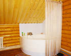 Комплекс имеет и свою традиционную русскую баню, которая рассчитана 10 человек. Постройка целиком выполнена из натурального дерева. Его аромат окружает гостей в течение всего времени посещения бани.