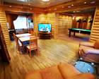 4 спальни. 1 этаж: гостиная с мягкой мебелью и телевизором, бильярд, кухня (холодильник, микроволновая печь, эл. плита ,набор посуды). 2 этаж: две спальни с двуспальной кроватью (мягкая мебель, холодильник, санузел с душевой кабиной при каждой спальне), две спальни с двумя одноместными кроватями (холодильник), санузел.