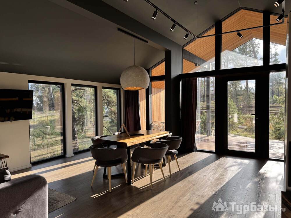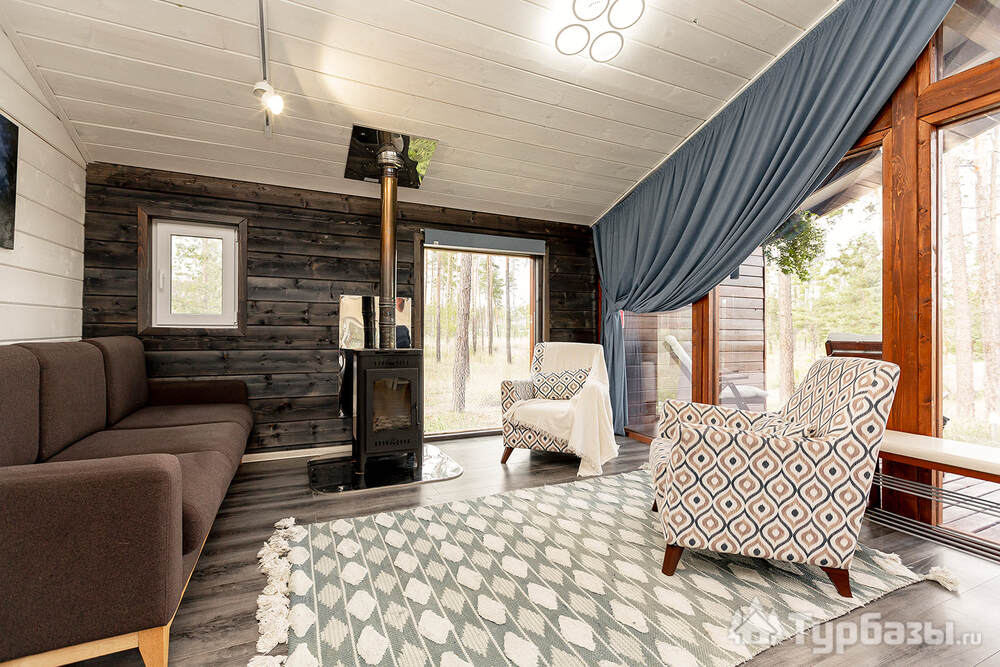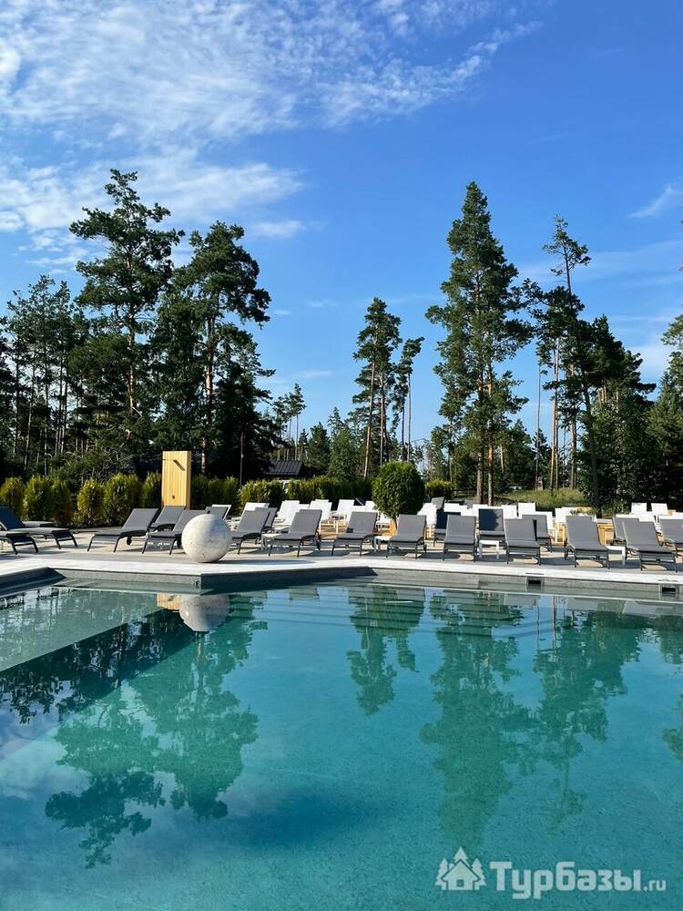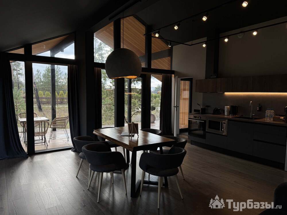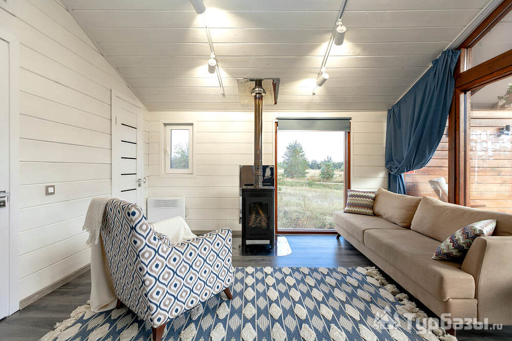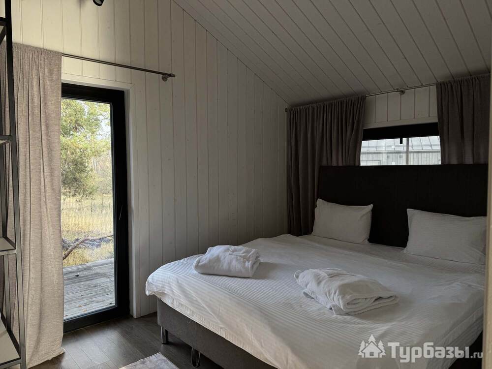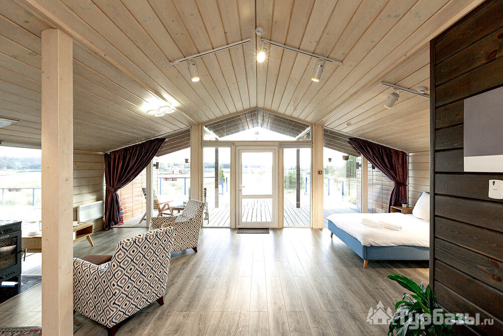 Само место легко воспринимается как «маленький резорт»: дома и отдельно стоящие барн-корпуса расположены так, чтобы каждая терраса выходила на зелень или воду, а планировка территории сохранила приватность даже при высокой загрузке отеля. Панорамные окна, каминные зоны и тёплые тональности интерьеров создают ощущение «загородного дома».