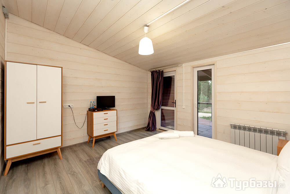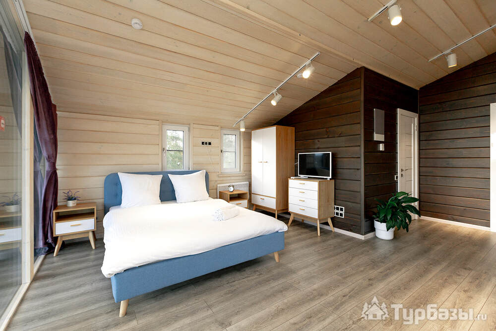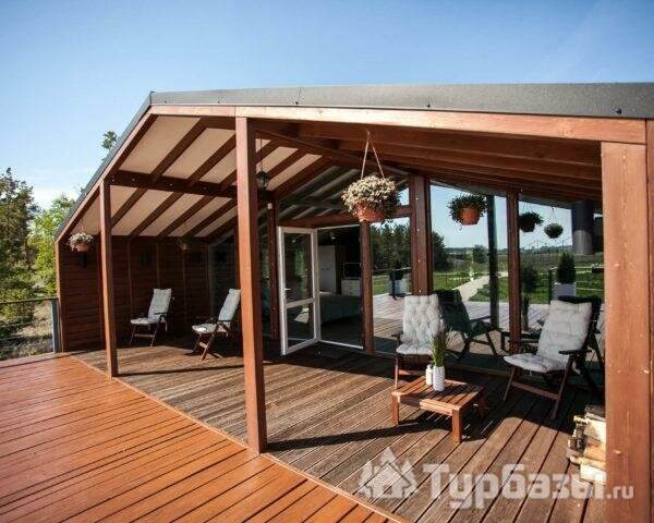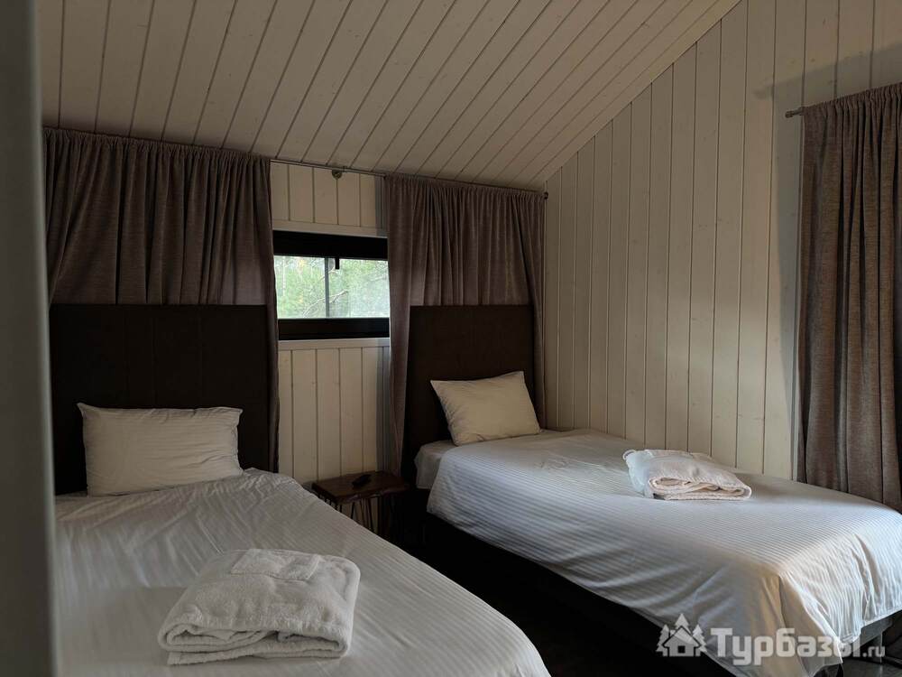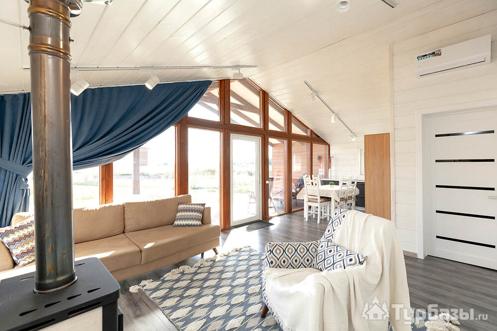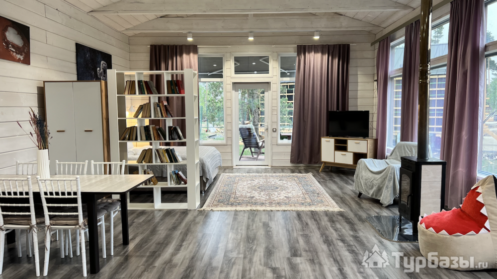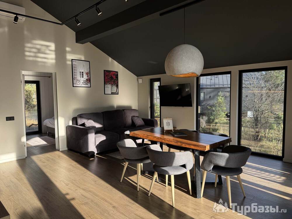 Само место легко воспринимается как «маленький резорт»: дома и отдельно стоящие барн-корпуса расположены так, чтобы каждая терраса выходила на зелень или воду, а планировка территории сохранила приватность даже при высокой загрузке отеля. Панорамные окна, каминные зоны и тёплые тональности интерьеров создают ощущение «загородного дома».