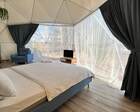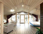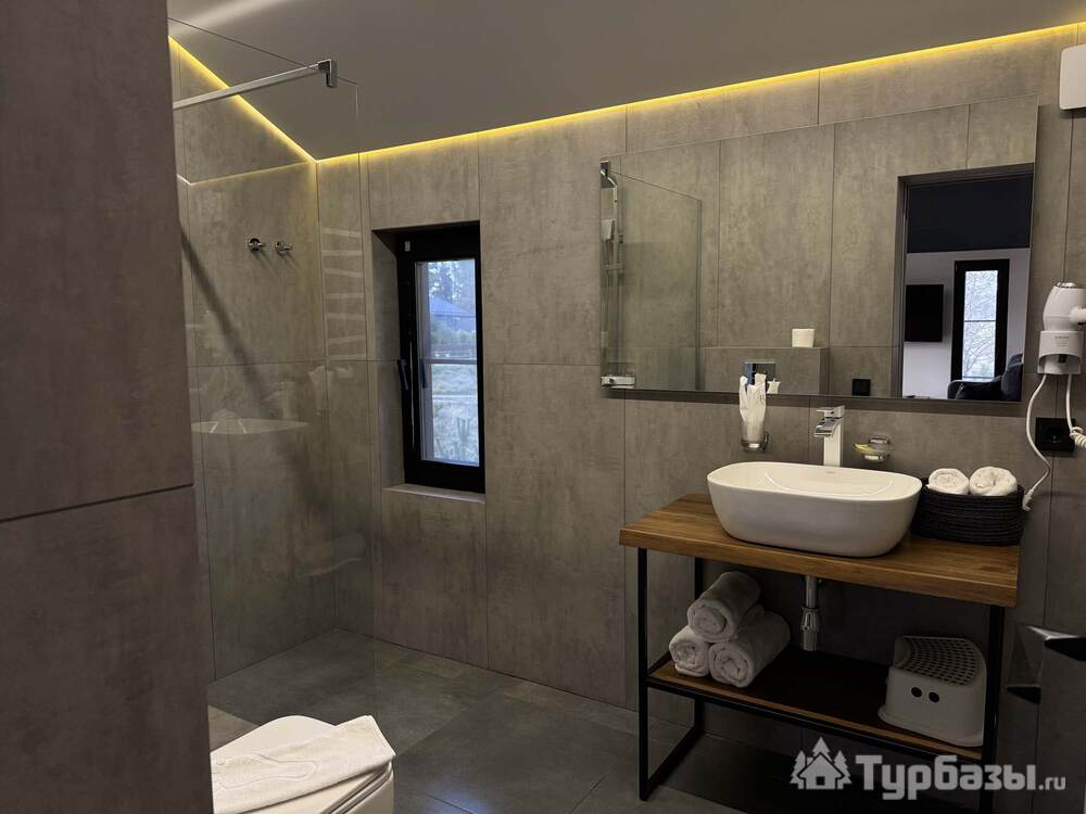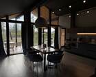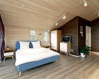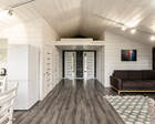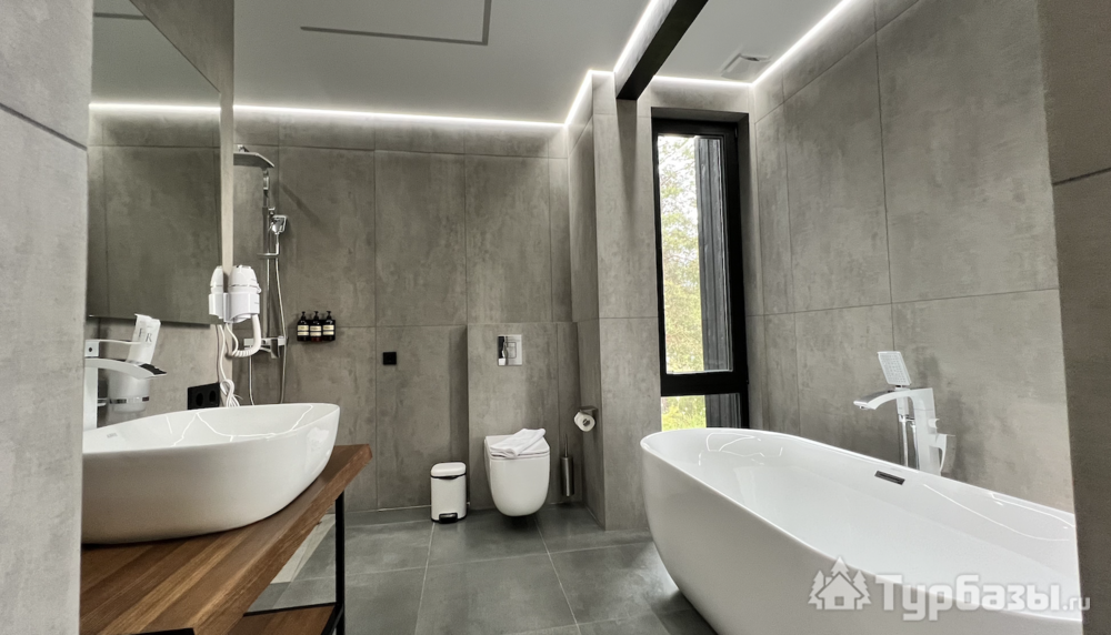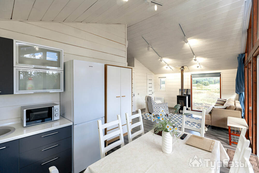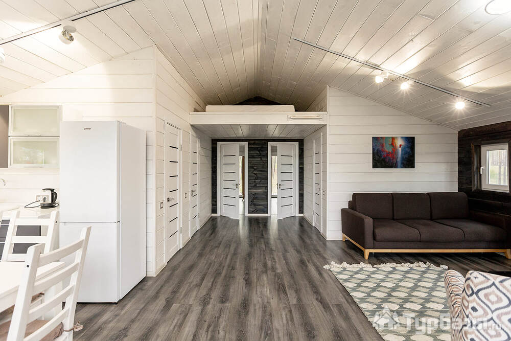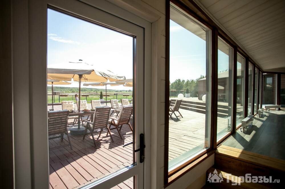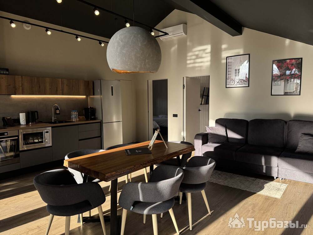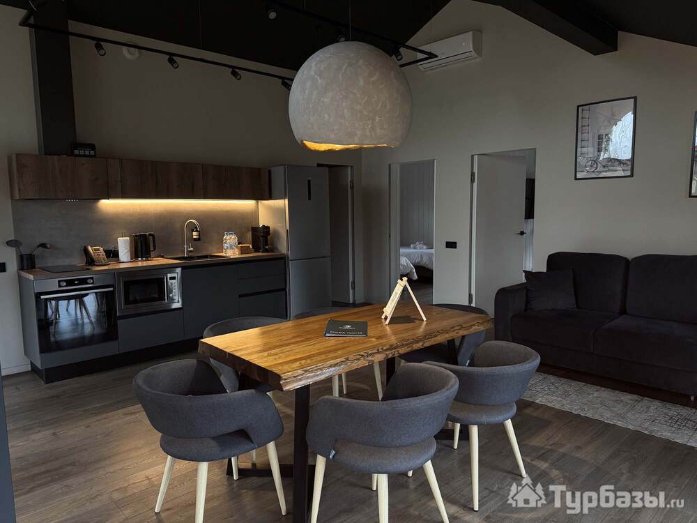Само место легко воспринимается как «маленький резорт»: дома и отдельно стоящие барн-корпуса расположены так, чтобы каждая терраса выходила на зелень или воду, а планировка территории сохранила приватность даже при высокой загрузке отеля. Панорамные окна, каминные зоны и тёплые тональности интерьеров создают ощущение «загородного дома».